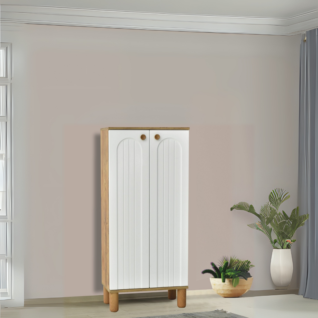 Lidya 2 Kapaklı Ayakkabılık – Atlantik Çam / Beyaz – 60x34x135 cm