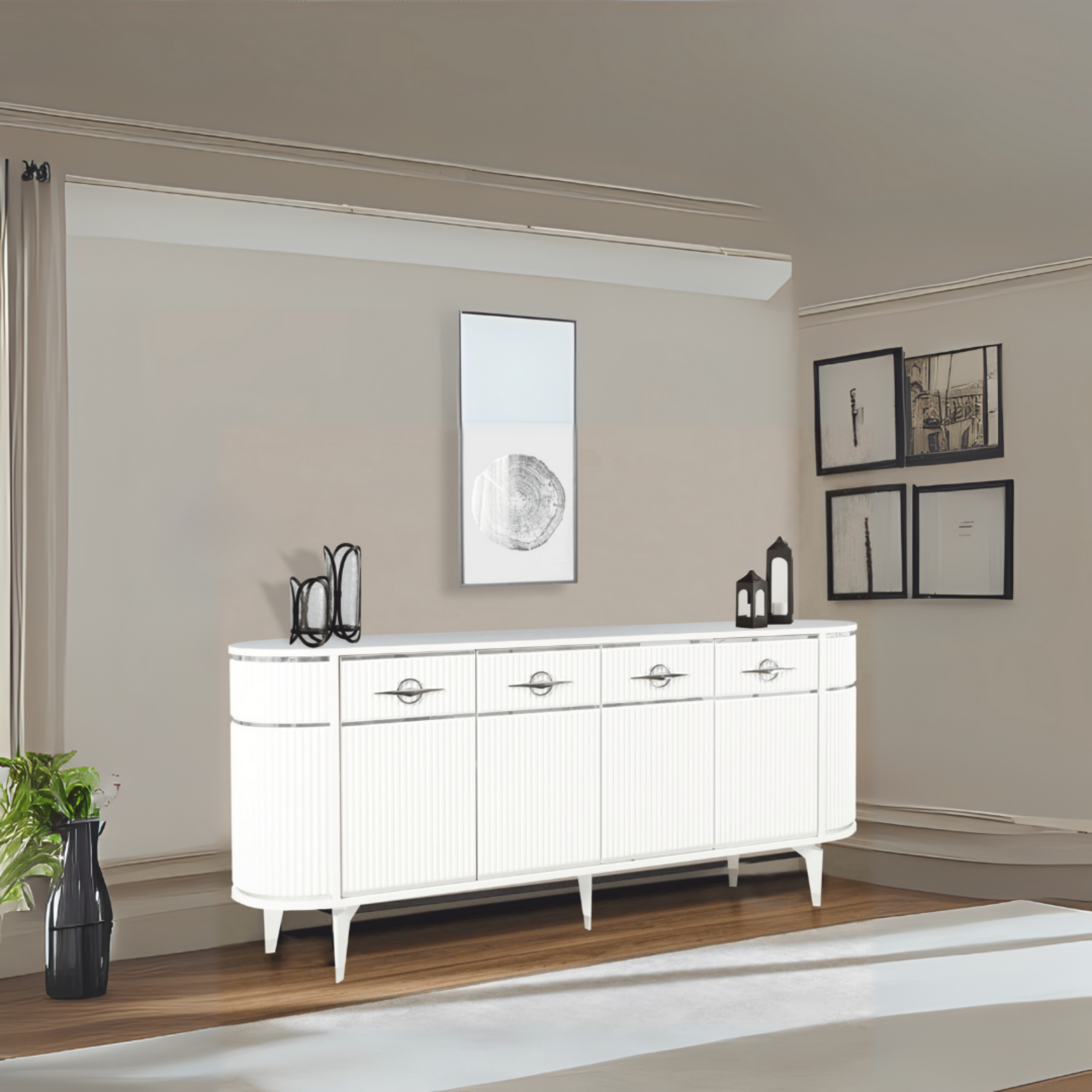 ✨ Maya Konsol beyaz zarafeti ve gümüş çizgili detaylarıyla yaşam alanınıza modern bir dokunuş sunar.