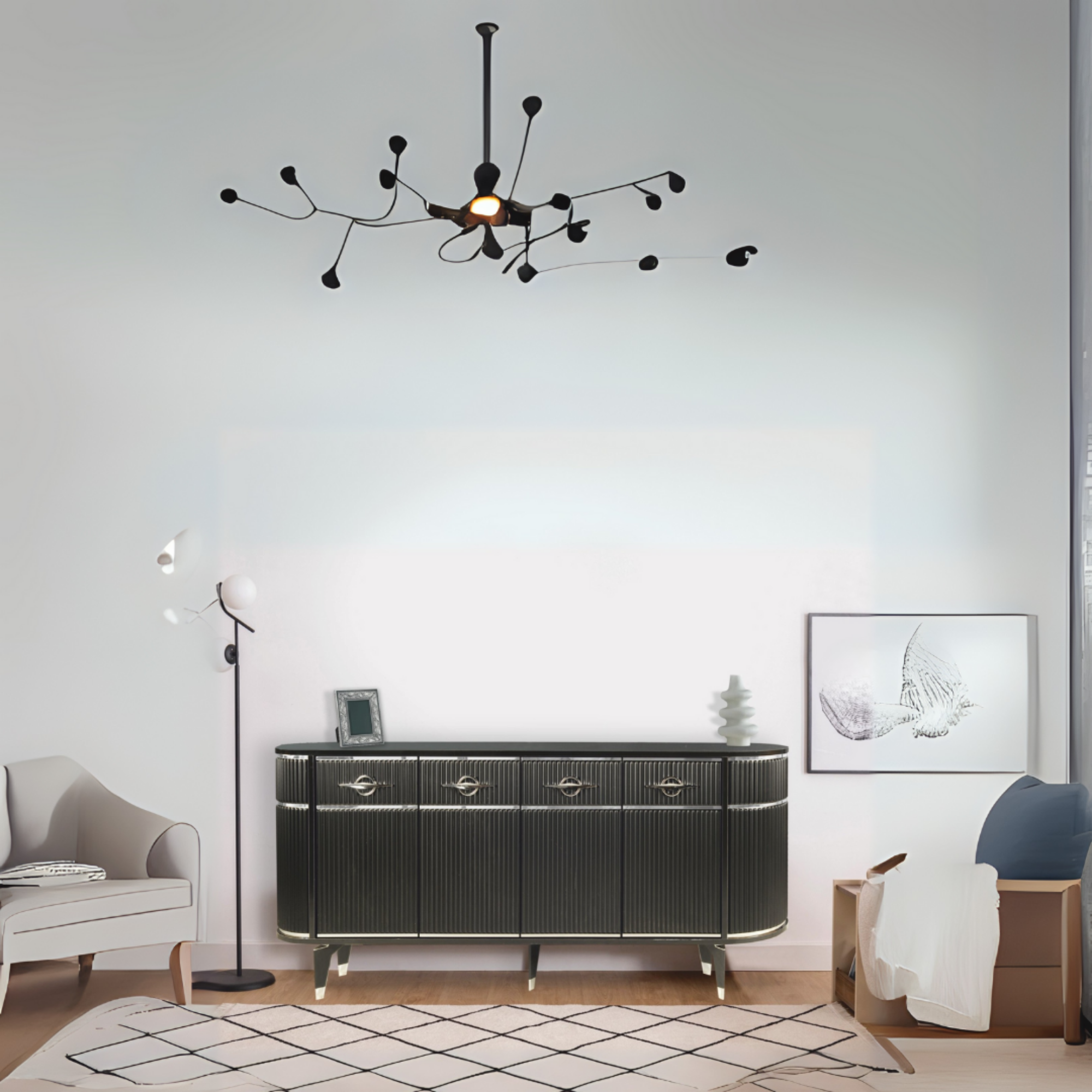 Maya Siyah Gold Lüks Konsol 4 Kapaklı Oval Gövde Gold Şeritli Metal Ayaklı 180x45x84 cm