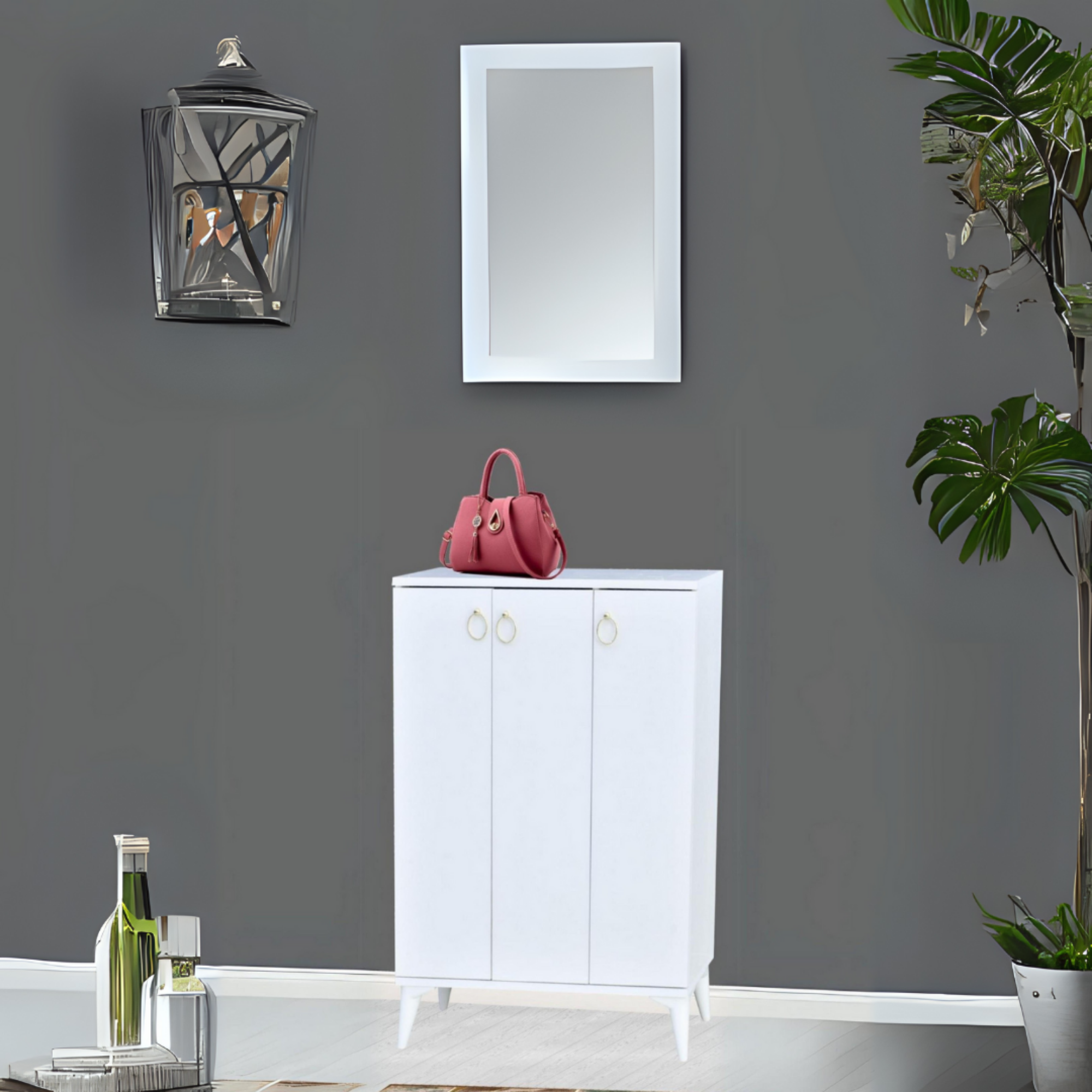 3 kapaklı çok bölmeli iç raf yapısıyla ayakkabılarınızı ve günlük eşyalarınızı düzenli bir şekilde saklamanızı sağlar. Üst tabla dekoratif objeler veya çantalar için ek kullanım alanı sunar.