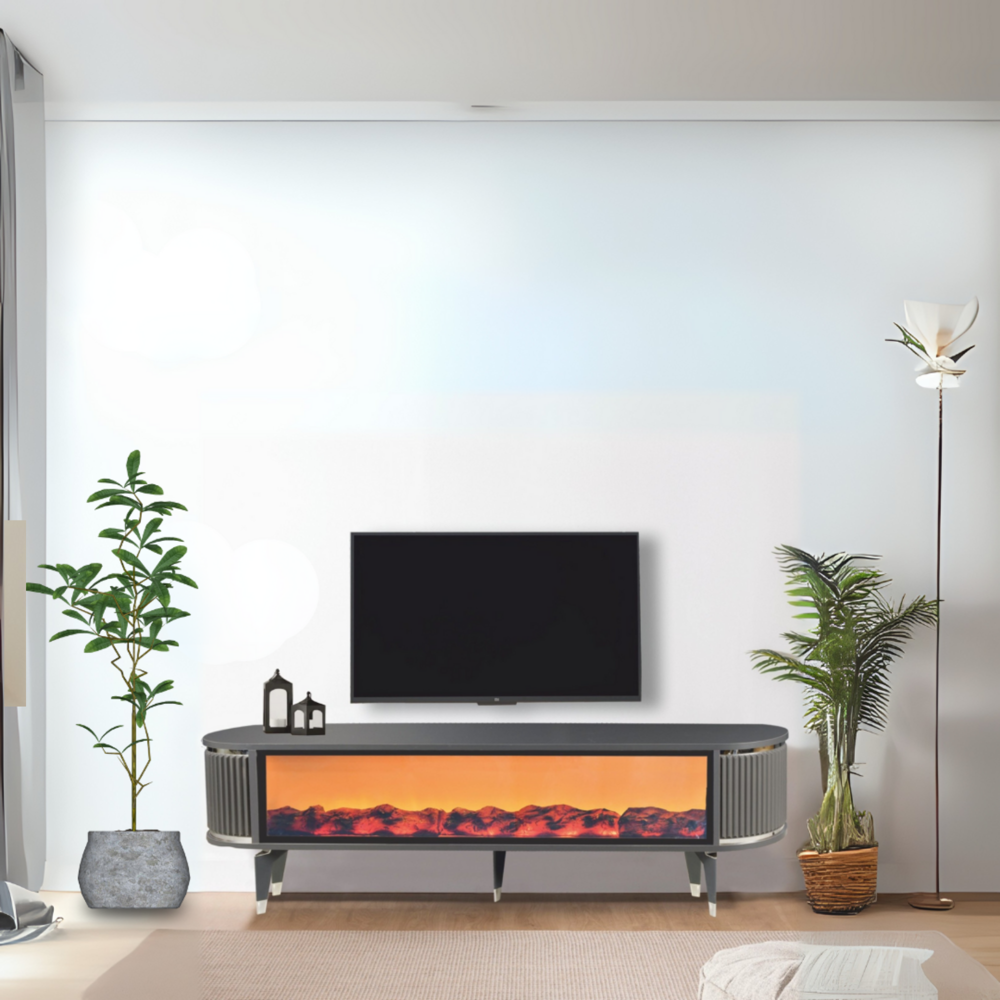Salon ve oturma odalarında estetik bir şömine etkisiyle televizyon ünitesi olarak kullanılabilir. Modern çizgileri ve güçlü gövde yapısıyla hem dekoratif hem fonksiyonel bir üründür.