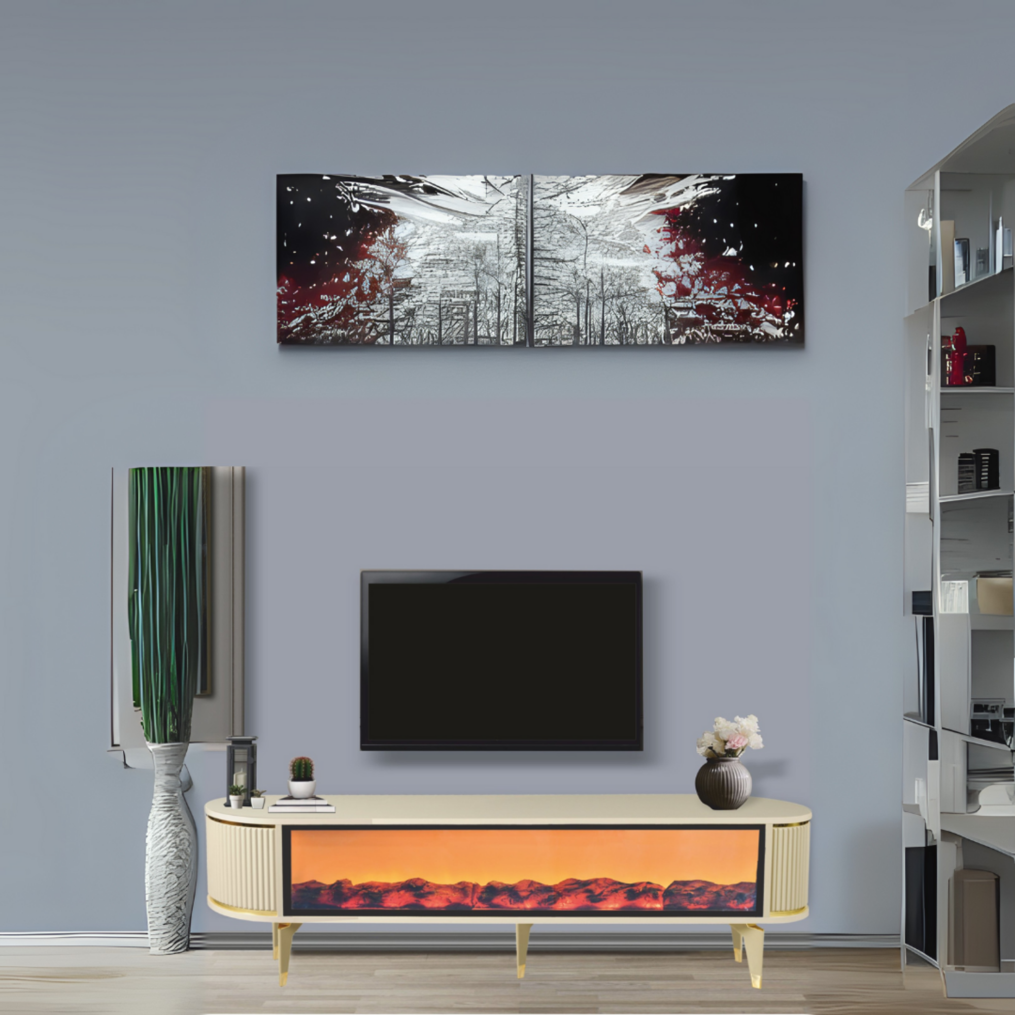 🔥 Ürün Özelliği: Tam uzunlukta dekoratif şömine paneli, yapay alev efekti, oval kenar tasarımı